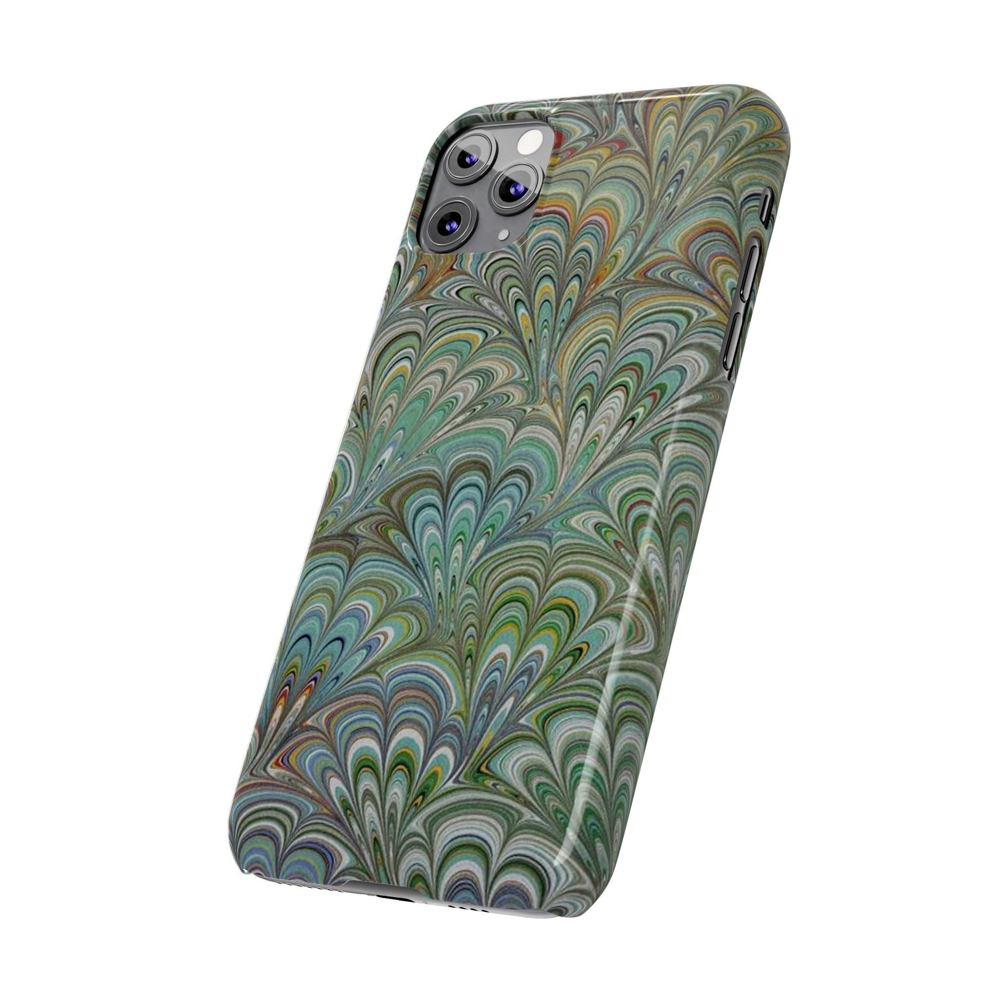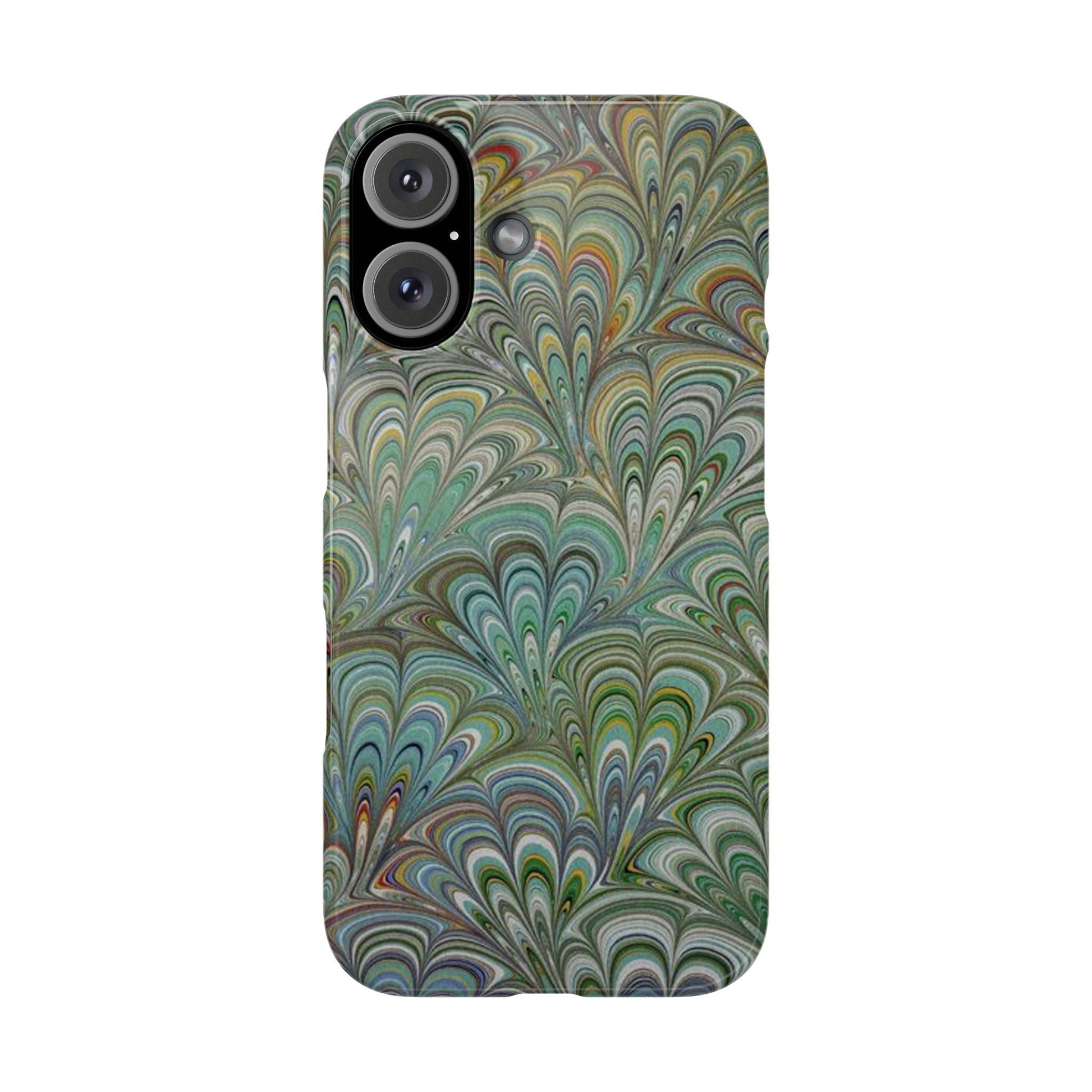 Deep Green Peacock Italian Marbled Design, Italy Feather Phone Case, Multi-Color, Slim Phone Cases, Case-Mate IPHONE16 and all sizes